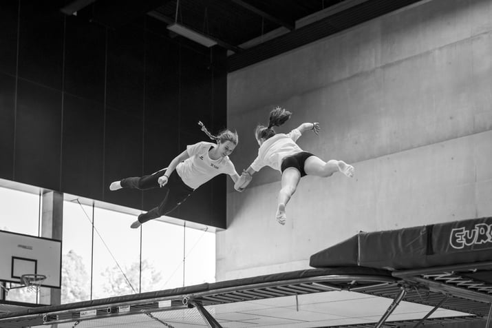 Die SportlerInnen haben in diesem Block die Möglichkeit, entsprechend ihrem Leistungsniveau turnerische/akrobatische Elemente zu erlernen bzw. zu vertiefen und neue Bewegungserfahrungen zu sammeln. Gleichzeitig wird ihre Kraftausdauer mit einem turnspezifischen Krafttraining erhöht. Durch eine klare Definition der individuellen Ziele kann jede/r Sportler/in an einer persönlichen Auswahl an Elementen arbeiten, ohne in der Gruppe über- oder unterfordert zu werden.